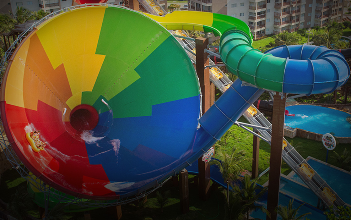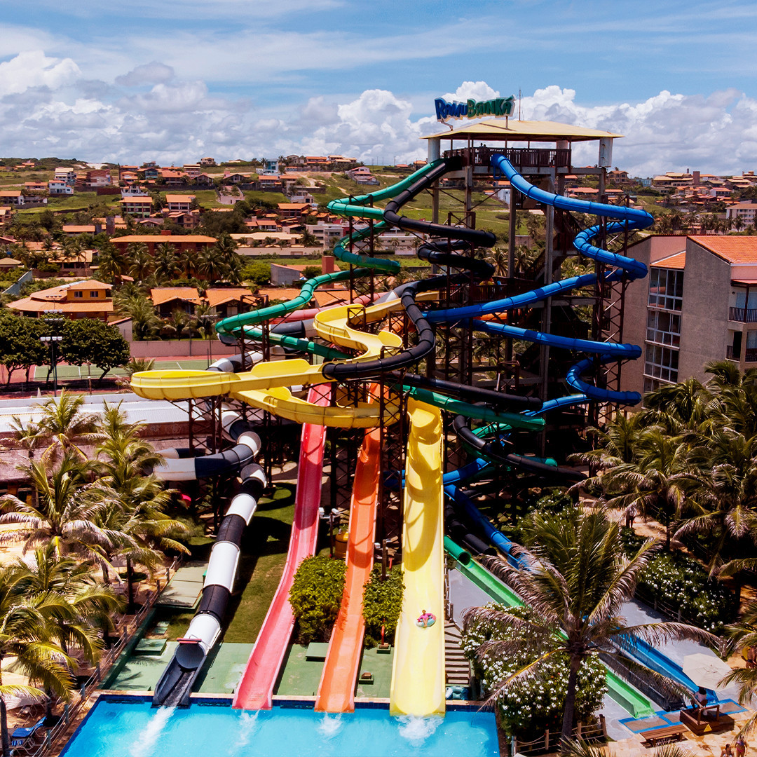 Ramubrinká: o complexo de sete toboáguas conta com pistas individuais e de boia, a 24 metros de altura. O percurso termina em uma grande piscina