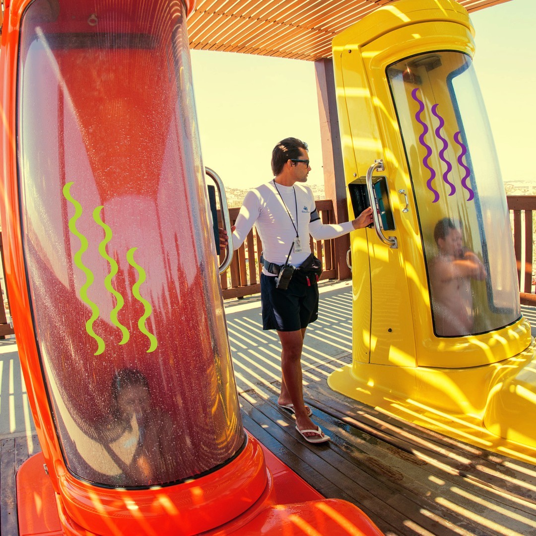A cápsula onde o chão se abre e uma imensa queda vertical acontece em um tobogã! As atrações radicais e divertidas do parque aquático Beach Park no Ceará