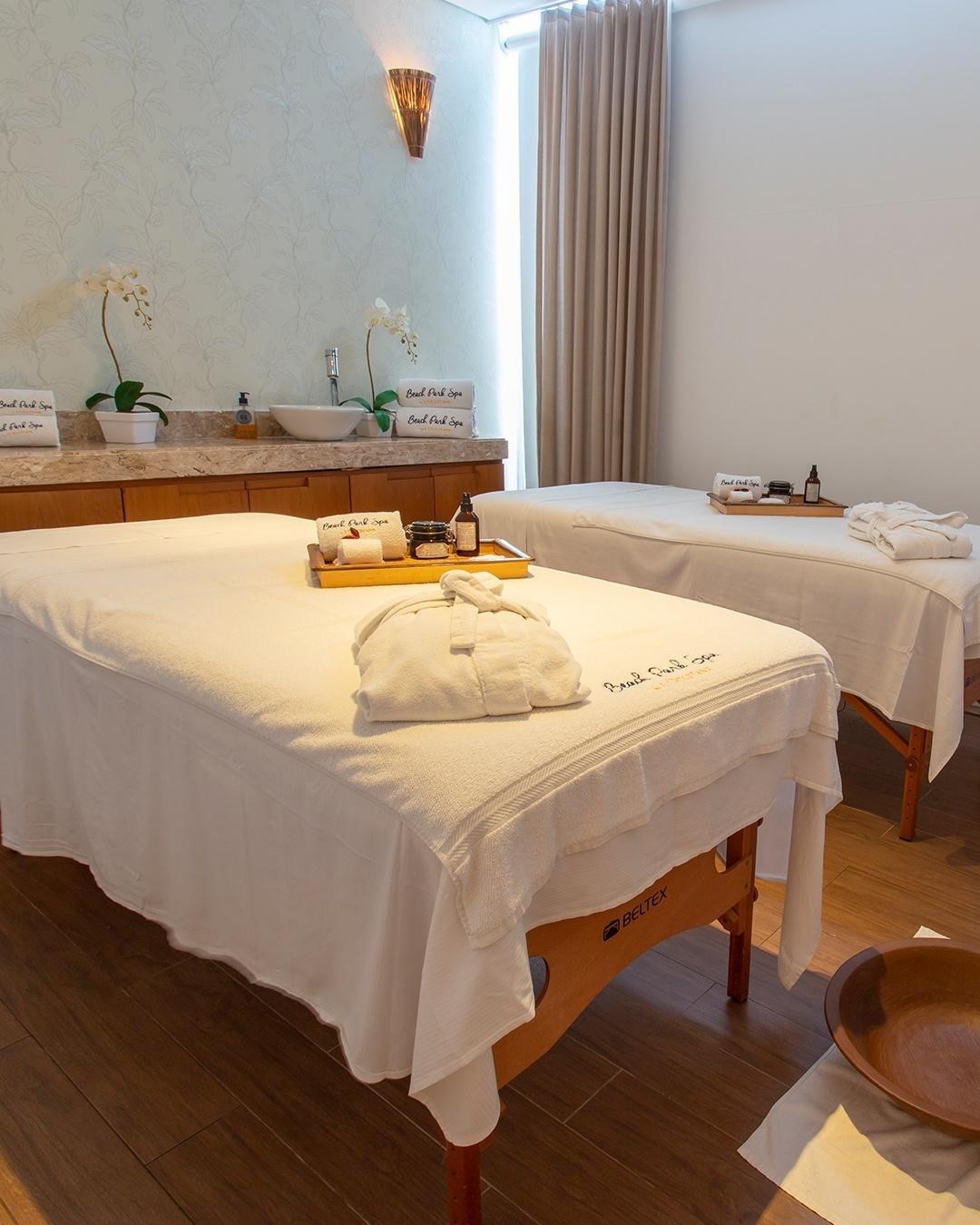O Espaço Cabanas fica na praia, é para quem deseja relaxar com conforto entre uma diversão e outra. São oito chalés privados com TV, toalhas e frigobar. Custa entre R$ 685 e R$785, com água incluso e R$85 devolvidos ao final da diária.