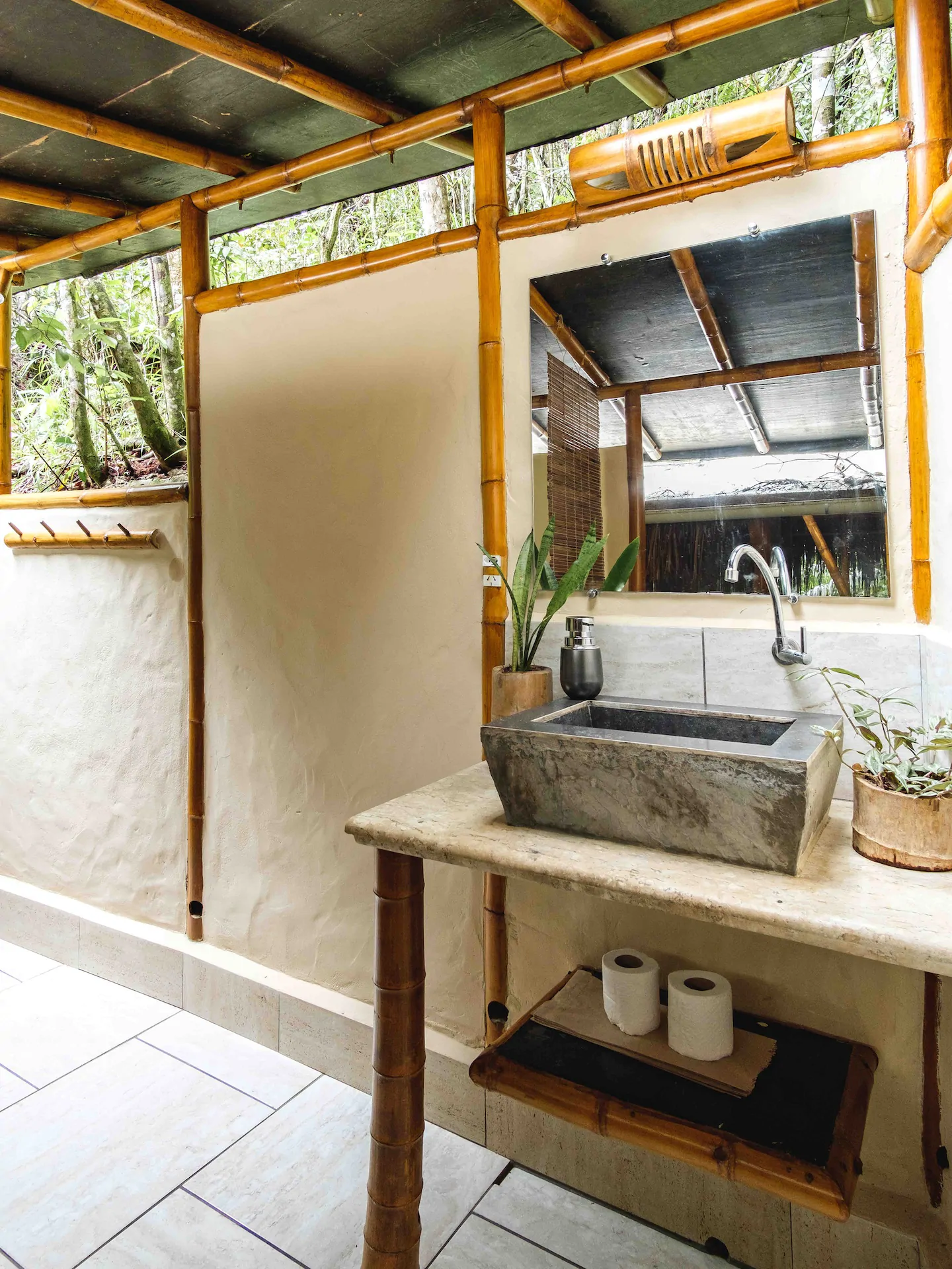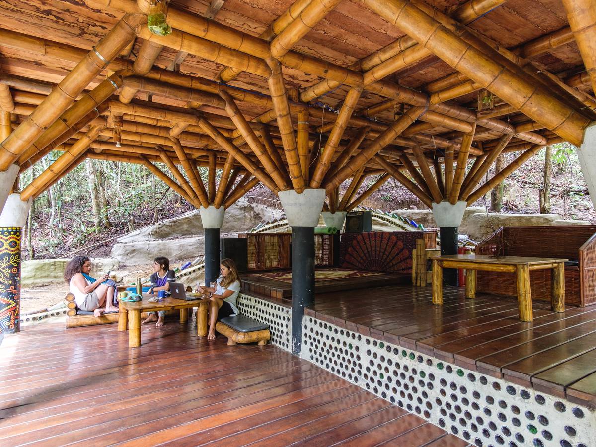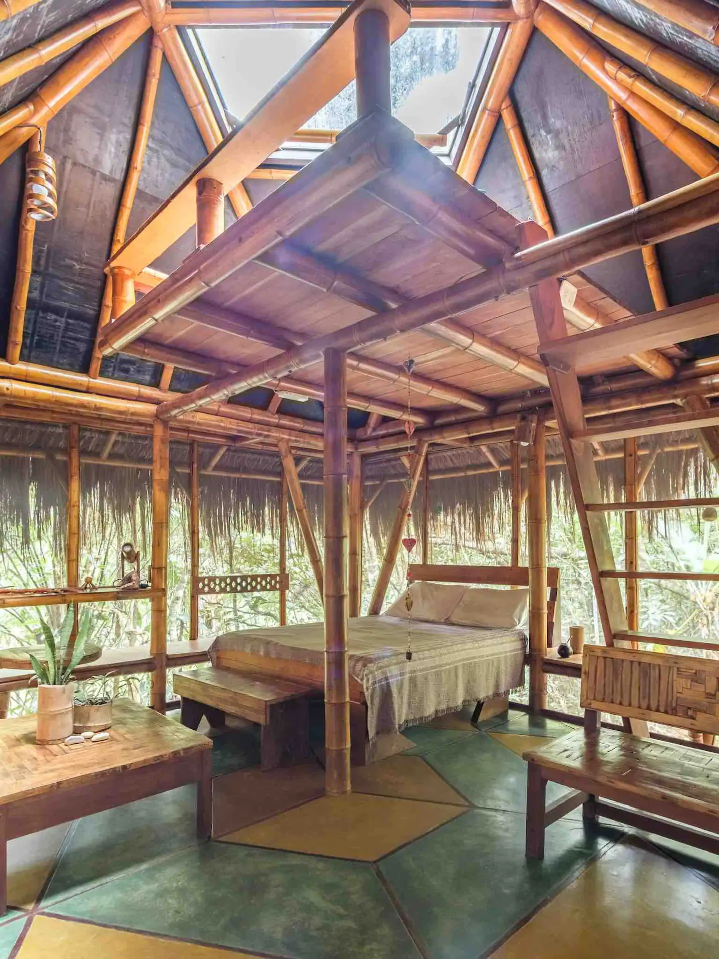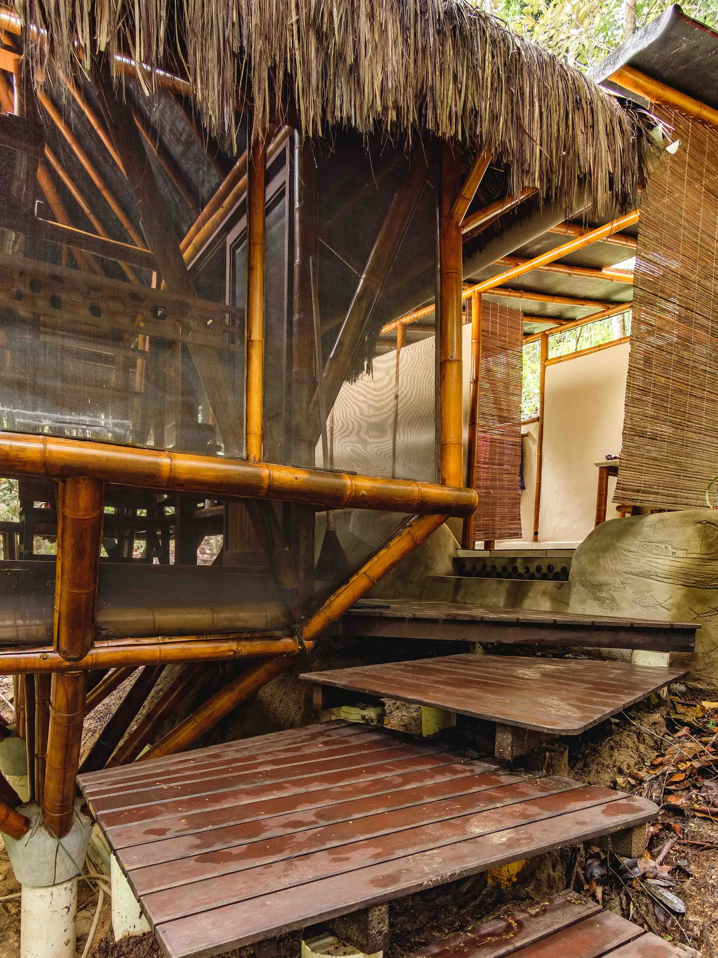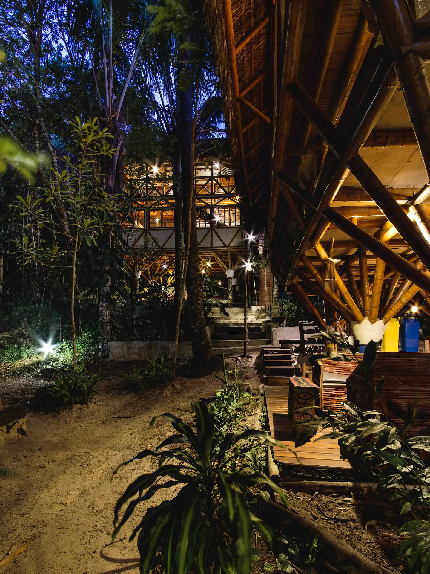 O bambu é o principal material usado na construção, combinando o que há de melhor em tecnologia, ecologia e design, a propriedade foi construída de acordo com os espaços livres para que não houvesse interferência na natureza. O hostel fica imerso em uma ambientação de floresta, muita fauna e flora e animais diversos.