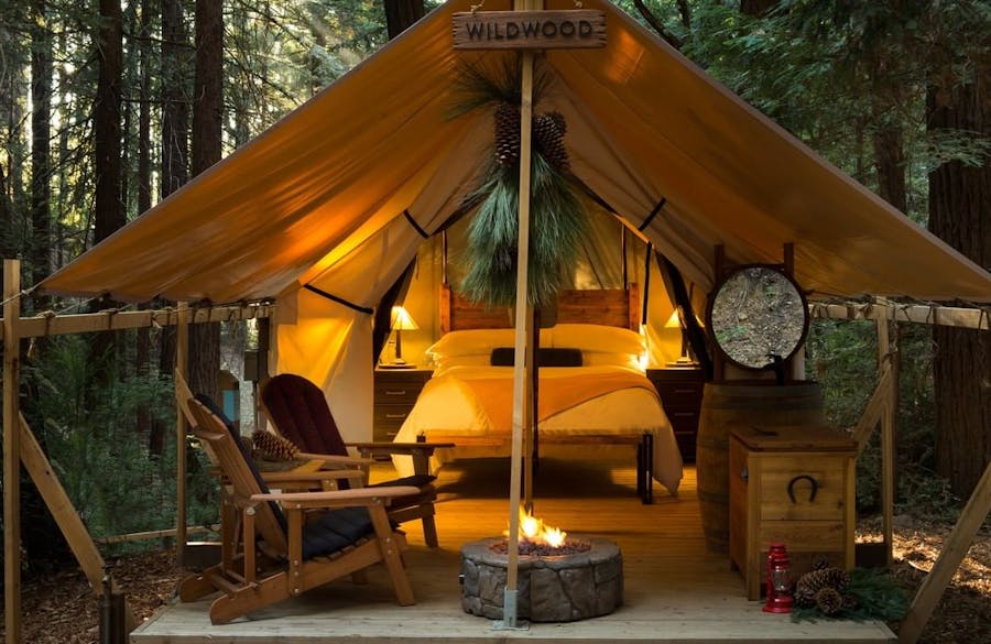 Um luxuoso e incrível glamping com tenda na floresta da belíssima Big Sur na Califórnia
