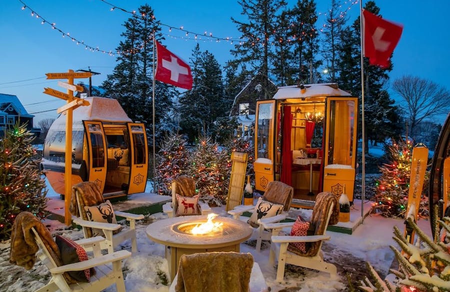 Uma vila de fondue com um jantar privativo dentro de uma gôndola de ski: A experiência que une gastronomia, neve e champanhe