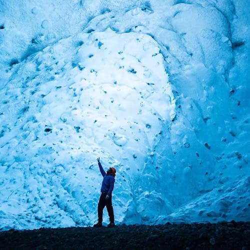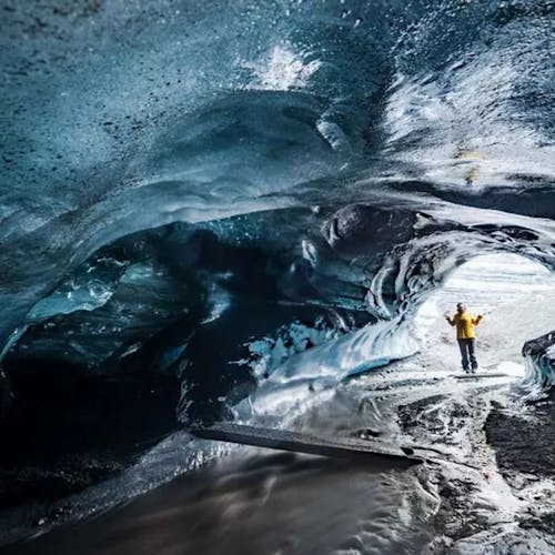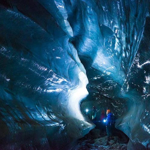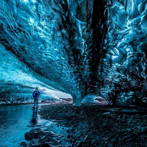 A maioria delas pode ser visitada em excursões de um dia e, como as próprias geleiras, a maioria das cavernas de gelo se encontra no sul da Islândia. Visitar uma caverna de gelo natural é realmente uma experiência única na vida, especialmente agora que as geleiras estão derretendo devido à mudança climática e o prazo para visitá-la está ficando menor. A sensação de estar dentro de uma geleira é difícil de superar e as cores e a história que se encontram nas camadas glaciais são impressionantes.