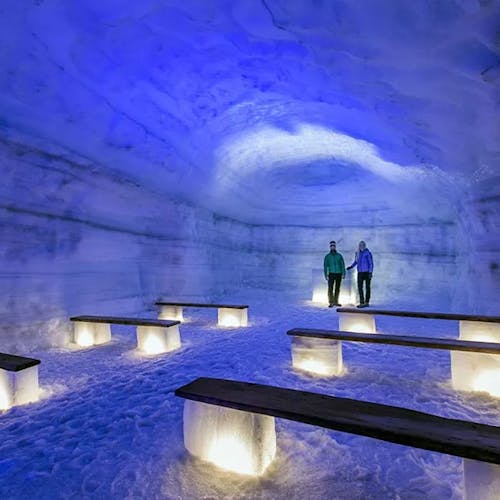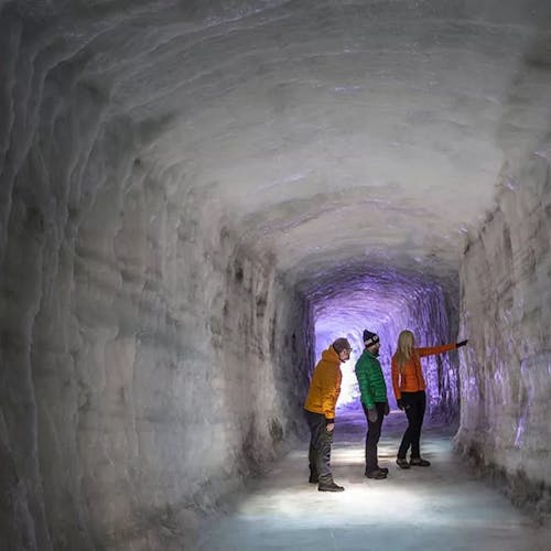 O terreno é como outro planeta enquanto você segue seu caminho. Ao explorar a deslumbrante geleira por dentro, é possível verá as camadas da geleira onde se tem uma lição de história sobre por que e o que fez essas linhas se formarem. Tem até uma capela dentro da geleira e já tem gente casada lá! Existem rachaduras na caverna, por isso é possível ver ainda melhor o núcleo das geleiras e haverá muitos momentos para tirar ótimas fotos. Criar este túnel de gelo exigiu muito planejamento mas pelo visto deu muito certo!