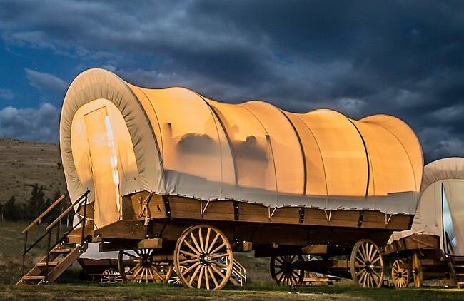 O Conestoga Wagon é um disputado vagão-trailer antigo e faz parte das acomodações do Yosemite Pines RV Resort, espaço que conta com aluguéis de trailers e também espaço para camping.